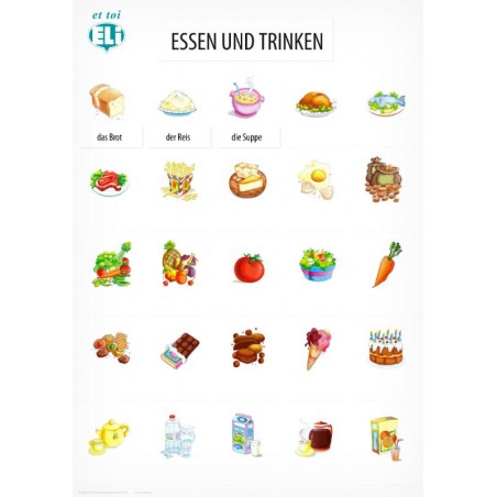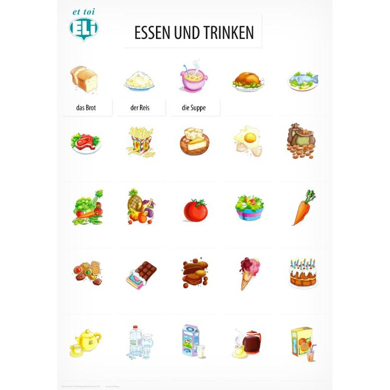 Plakat edukacyjny z serii Aktive Lernplakate mit Wörtern - nauka słówek niemieckich: jedzenie i picie