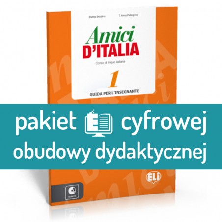 Amici d'Italia 1 guida per l'insegnante: przewodnik metodyczny + nagrania + pakiet cyfrowej obudowy dydaktycznej wraz e-podręcznikiem ucznia.