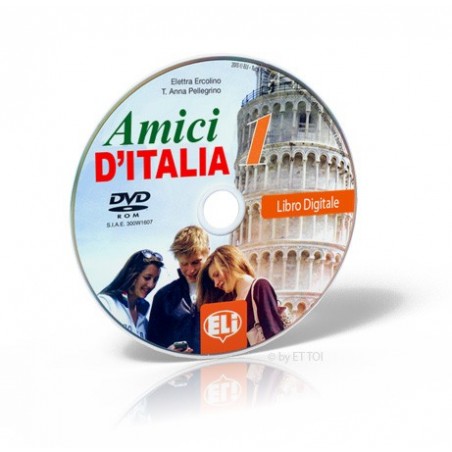 Amici d'Italia 1 Libro digitale per l’insegnante (podręcznik w formie e-booka): podręcznik cyfrowy dla nauczyciela na płycie DVD stanowiący odpowiednik cyfrowej książki malucha oferowanej w ramach pakietu cyfrowej obudowy dydaktycznej.