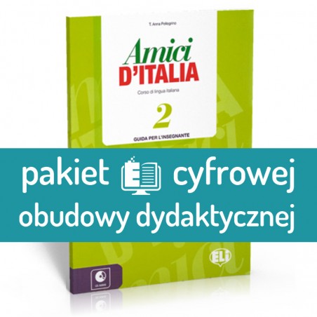 Amici d'Italia 2 guida per l'insegnante: przewodnik metodyczny + nagrania + pakiet cyfrowej obudowy dydaktycznej wraz e-podręcznikiem ucznia.