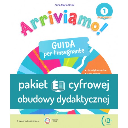 Arriviamo! 1 guida per l'insegnante: przewodnik metodyczny + nagrania + pakiet cyfrowej obudowy dydaktycznej wraz e-podręcznikiem ucznia.