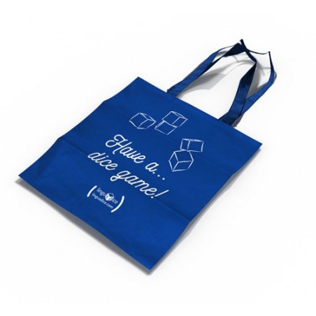 Oryginalna, stylowa torba "Have a dice game!" w kolorze granatowym. Ekologiczna, wykonana w 100% z bawełny, z długimi, wzmocnionymi uchwytami.