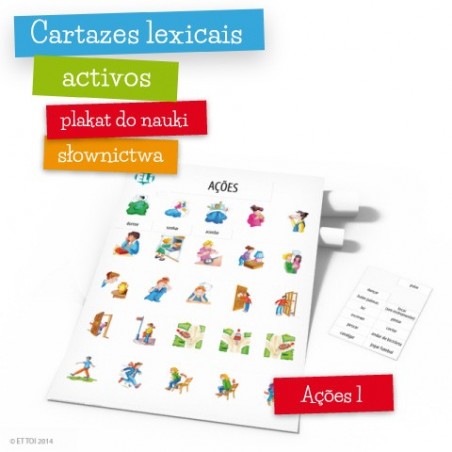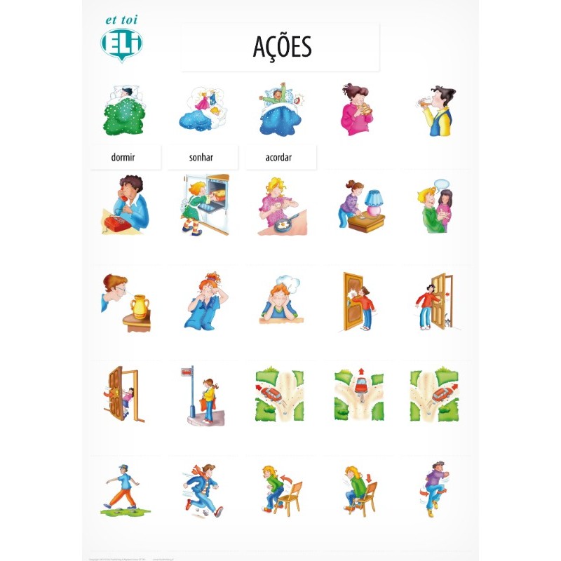 Plakat edukacyjny z serii Cartazes lexicais activos - nauka słówek portugalskich: nazwy czynności/czasowniki, część 1