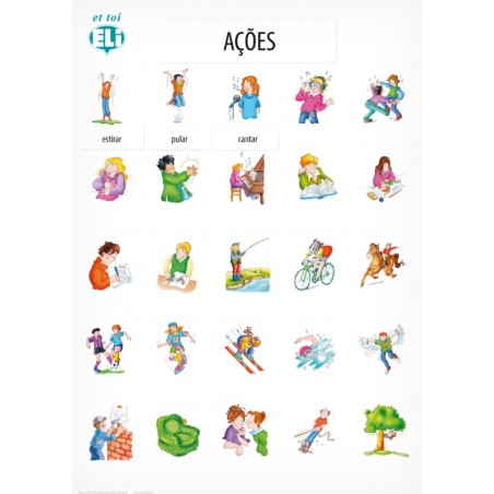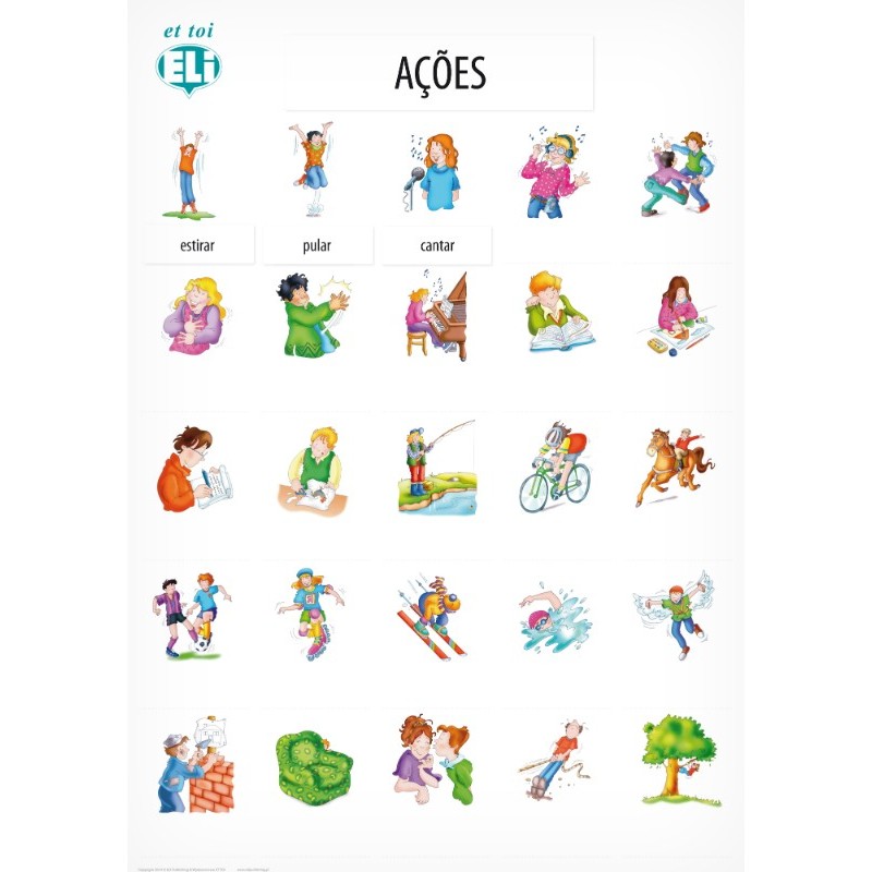 Plakat edukacyjny z serii Cartazes lexicais activos - nauka słówek portugalskich: nazwy czynności/czasowniki, część 2