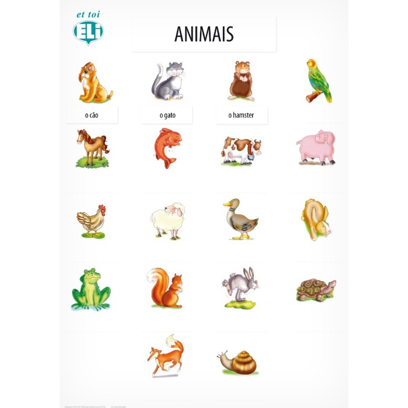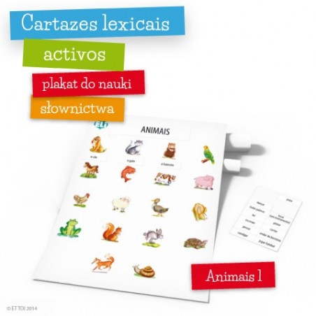 Plakat edukacyjny z serii Cartazes lexicais activos - nauka słówek portugalskich: zwierzęta/nazwy zwierząt, część 1