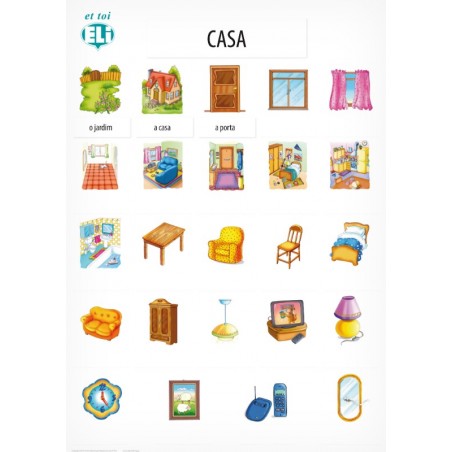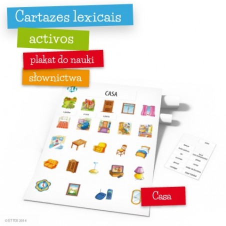Plakat edukacyjny z serii Cartazes lexicais activos - nauka słówek portugalskich: dom, sprzęty domowe i elementy wyposażenia