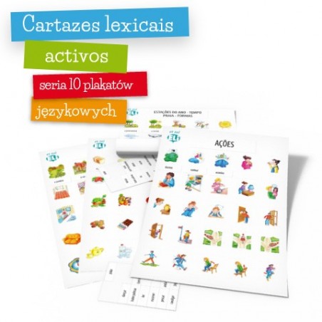 Opis serii: Cartazes lexicais activos to seria 10 plansz dydaktycznych ułatwiających poznawanie podstawowego słownictwa portugalskiego z czternastu wybranych kategorii tematycznych.