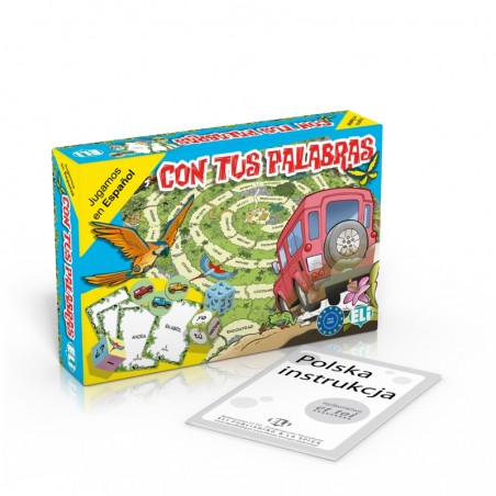 Con tus palabras to planszowa gra językowa o tematyce podróżniczej, w której gracze uczestnicząc w niebezpiecznej eskapadzie w głąb dżungli, ćwiczą budowanie zdań w języku hiszpańskim z użyciem wylosowanych czasowników, trybów zdań i wyrażeń czasowych.