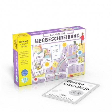 Gra językowa Das Spiel zur Wegbeschreibung: gra edukacyjna dla dzieci i młodzieży. Jak dotrzeć do...? Naucz się pytać o drogę i udzielać wskazówek po niemiecku! Zabawna gra, która nauczy Cię potrzebnego słownictwa i zwrotów przydatnych na co dzień i w podróży.