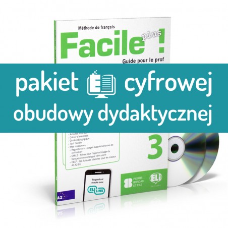 Kluczem do aktywowania obudowy jest książkowy przewodnik metodyczny z kodem dostępu: wewnątrz przewodnika znajduje się kod umożliwiający nauczycielowi bezterminowe korzystanie z całości metody Facile plus ! na poziomie trzecim w formie cyfrowej na platformie edukacyjnej ELi (wymagana rejestracja) wraz z dostępem do narzędzi prowadzenia nauczania cyfrowego, zarządzeniem klasą i pracą uczniów.