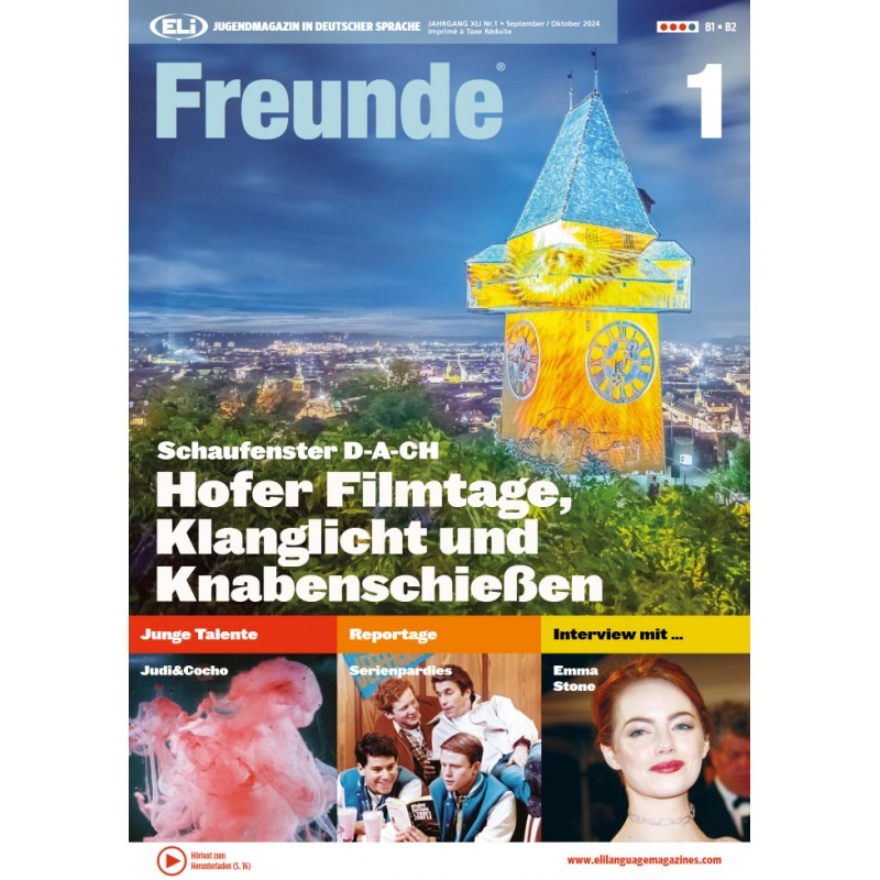 Die Zeitschrift enthält Artikel zum Diskutieren und viele Nachrichten über Aktuelles und Kultur der deutschsprachigen Länder. Spiele und Übungen zum Festigen, Comics und Vermischtes runden das Ganze ab und ermöglichen einen originellen und vergnüglichen.