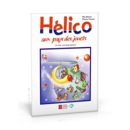 Hélico aux pays des jouets - guide pédagogique to podręcznik metodyczny dla nauczyciela do kursu wstępnego Hélico aux pays des jouets prezentujący jego główne założenia dydaktyczne oraz sugestie i wskazówki dotyczące dodatkowych ćwiczeń i zabaw bazujących na podręczniku. Każda lekcja opisana jest pod kątem wprowadzanych funkcji komunikacyjnych i struktur językowych. Dodatkowo w książce znajdują się strony przeznaczone do kserowania z ćwiczeniami sprawdzającymi, obrazkami do kolorowania dla dzieci, wycinankami i różnymi pracami ręcznymi (instrukcje wykonania kartek z życzeniami bożonarodzeniowymi i wielkanocnymi oraz maski karnawałowej).