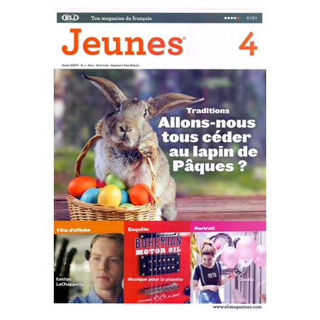 Czasopismo językowe Jeunes - nr Jeunes - nr 4 - 2018/2019 (nagrania audio w formacie mp3 i materiały dla nauczyciela do ściągnięcia online). Poziom B1-B2 Europejskiego Systemu Opisu Kształcenia Językowego (Cadre Européen Commun de Référence).