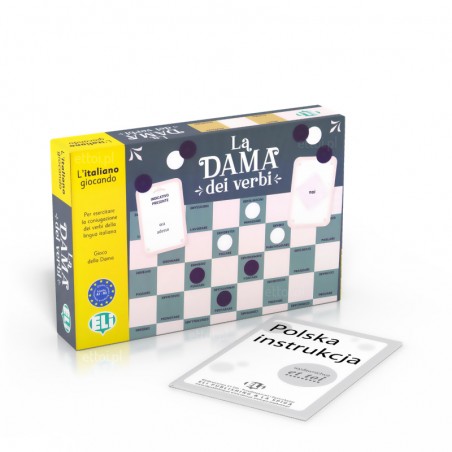 Gra językowa La Dama dei Verbi - gra planszowa w warcaby ucząca włoskich czasowników regularnych, nieregularnych i zwrotnych.