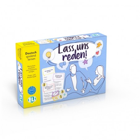 Gra językowa Lass uns reden! - gra rozwijająca umiejętność mówienia po niemiecku na poziomach średnio zaawansowanym (B1, B2) i zaawansowanym (C1).