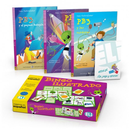 • trzy lektury o przygodach kosmity PB3 z serii Lecturas ELI Infantiles wraz nagraniami audio mp3 (do wykorzystania również w formie audiobooka) i materiałami wideo;