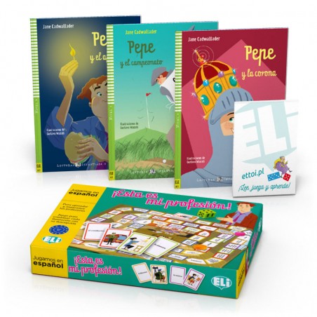 • trzy lektury o przygodach detektywa Pepe z serii Young ELI Readers wraz nagraniami audio mp3 (do wykorzystania również w formie audiobooka) i materiałami wideo;