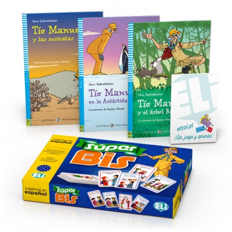 • trzy lektury o przygodach Tío Manuel z serii Lecturas ELI Infantiles wraz nagraniami audio mp3 (do wykorzystania również w formie audiobooka) i materiałami wideo;