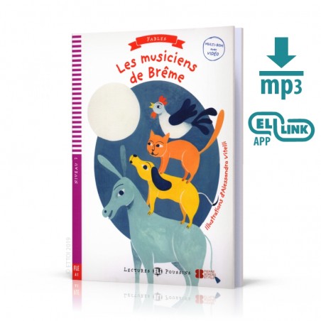 Les musiciens de Brême - bajka Muzykanci z Bremy po francusku dla dzieci - uproszczona językowo lektura z serii Lectures ELI Poussins - Fables do nauki języka francuskiego z nagraniem audio, materiałem video oraz multimedialnymi ćwiczeniami online.