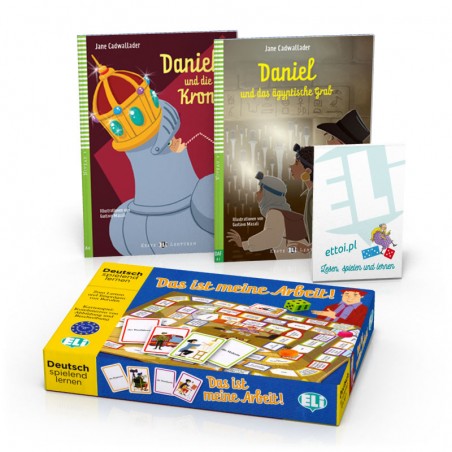 • dwie lektury o przygodach detektywa Daniela z serii Erste ELI Lektüren wraz nagraniami audio mp3 (do wykorzystania również w formie audiobooka) i materiałami wideo;