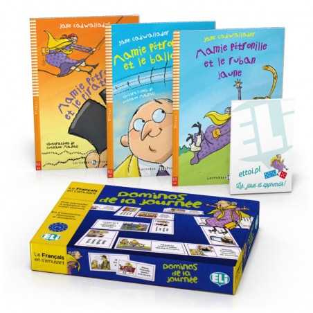 • trzy lektury o przygodach Mamie Pétronille z serii Lectures ELI Poussins wraz nagraniami audio mp3 (do wykorzystania również w formie audiobooka) i materiałami wideo;