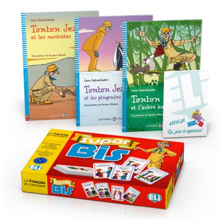 • trzy lektury o przygodach Tonton Jean z serii Lectures ELI Poussins wraz nagraniami audio mp3 (do wykorzystania również w formie audiobooka) i materiałami wideo;