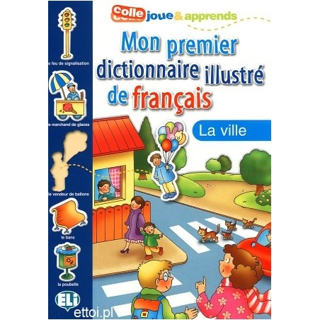 Mon premier dictionnaire illustré de français - La ville - słownik obrazkowy z kolekcji Mon premier dictionnaire illustré de français - colle, joue & apprends przeznaczony dla dzieci w wieku od 3 do 7 lat.