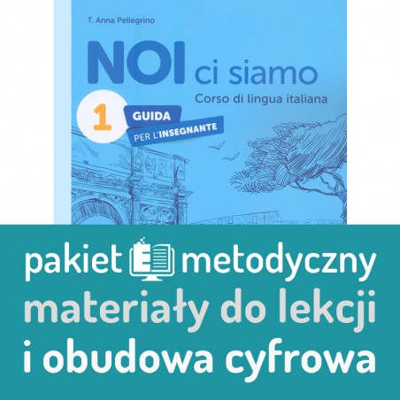Zaplecze metodyczne umożliwiające pełną realizację ścieżki dydaktycznej metody NOI ci siamo na poziomie 1. Przeznaczone jest dla nauczycieli i lektorów nauczających języka włoskiego przy wykorzystaniu komponentów metody NOI ci siamo.