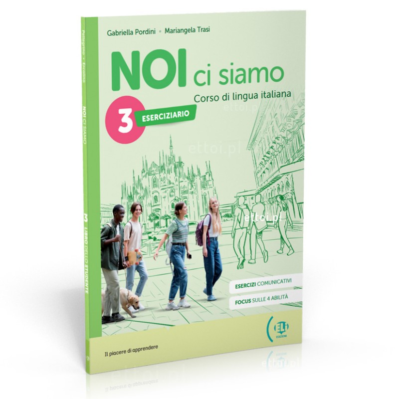 Ćwiczenia do trzeciej części kursu języka włoskiego dla nastolatków NOI ci siamo wraz z wersją interaktywną online w postaci multimedialnego podręcznika.