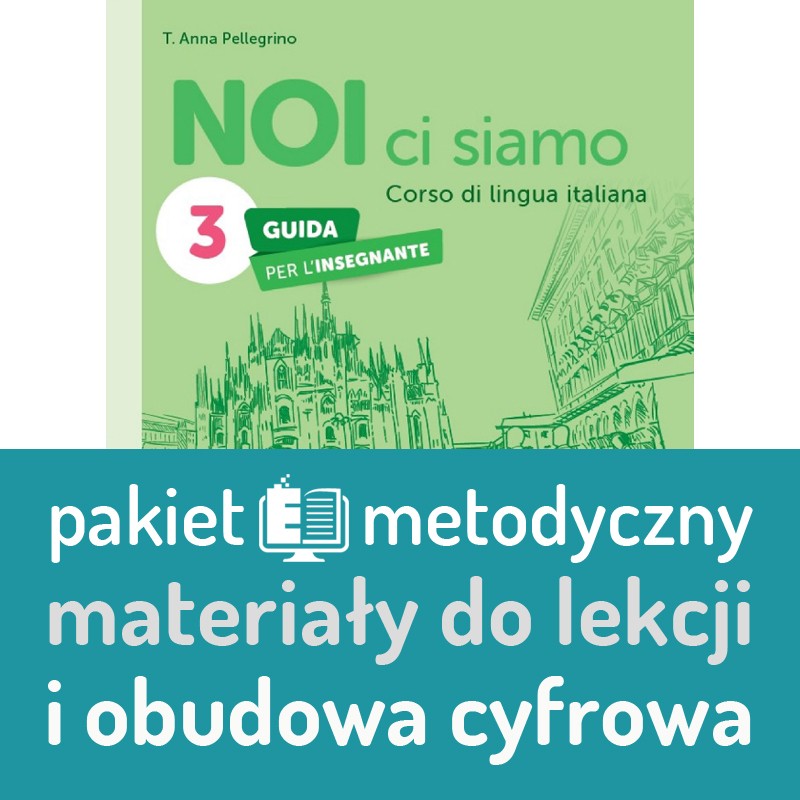 Zaplecze metodyczne umożliwiające pełną realizację ścieżki dydaktycznej metody NOI ci siamo na poziomie 3. Przeznaczone jest dla nauczycieli i lektorów nauczających języka włoskiego przy wykorzystaniu komponentów metody NOI ci siamo.