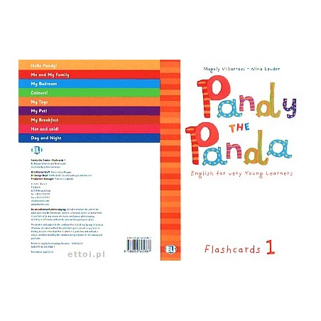 Pandy the Panda Flashcards, to zestaw pięknie wydanych obrazkowych kart tematycznych uzupełniających zajęcia z językowe w przedszkolu z kursem Pandy the Panda i zawierających elementarne słownictwo angielskie. W sumie 60 obrazków, które można wykorzystać nie tylko w zestawieniu z tym kursem, ale również jako materiały dodatkowe do innego dowolnego kursu języka angielskiego, bądź nawet do nauki innego języka obcego.<br /> Karty są dostarczane w luźnej formie, zapakowane w zamykane opakowanie foliowe.