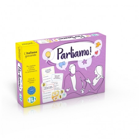 Parliamo! jest zestawem kart ćwiczących budowanie wypowiedzi ustnej w zakresie swobodnego wyrażania opinii, życzeń, obaw i opisywania wrażeń dotyczących otaczającego świata, do wykorzystania jako karty do nauki mówienia oraz jako gra towarzyska w konwencji Jak dobrze znasz inne osoby?