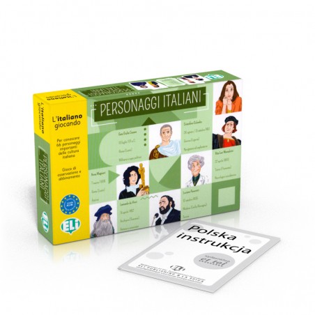 Gra językowa Personaggi italiani - karciana zgadywanka typu memory do nauki włokiego o tematyce kulturowej - znani Włosi.