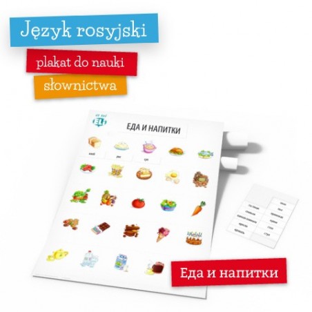Plakat tematyczny - język rosyjski - nauka słówek: jedzenie/żywność/artykuły spożywcze/napoje