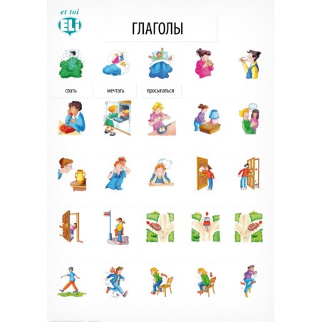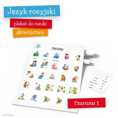 Plakat tematyczny - język rosyjski - nauka słówek: nazwy czynności/czasowniki, część 1
