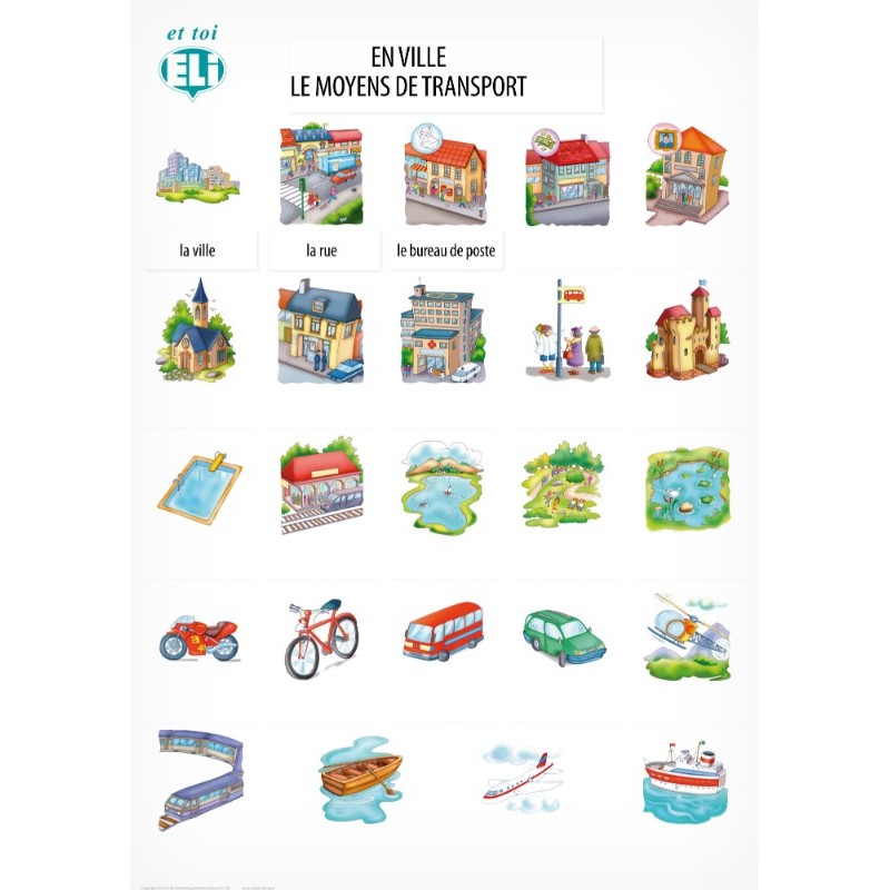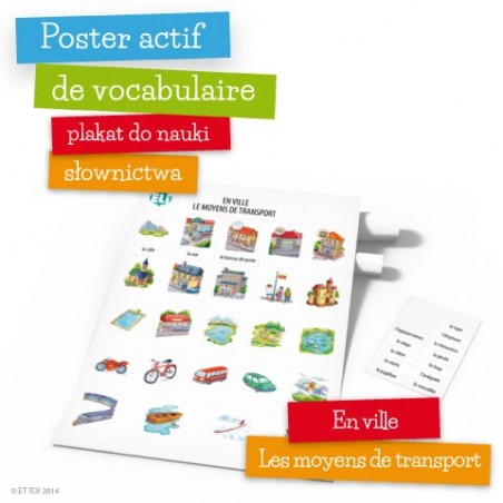 Plakat edukacyjny z serii Posters actifs de vocabulaire thématique - nauka słówek francuskich: miasto, środki transportu