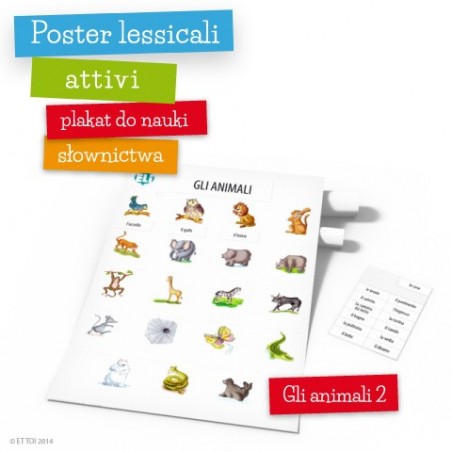 Plakat edukacyjny z serii Poster lessicali attivi - nauka słówek włoskich: zwierzęta/nazwy zwierząt, część 2