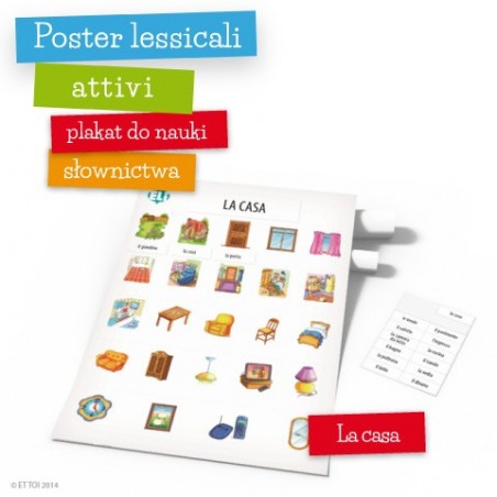 Plakat edukacyjny z serii Poster lessicali attivi - nauka słówek włoskich: dom, sprzęty domowe i elementy wyposażenia