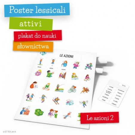 Plakat edukacyjny z serii Poster lessicali attivi - nauka słówek włoskich: nazwy czynności/czasowniki, część 2