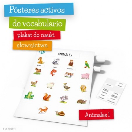Plakat edukacyjny z serii Pósteres activos de vocabulario - nauka słówek hiszpańskich: zwierzęta/nazwy zwierząt, część 1