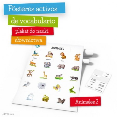 Plakat edukacyjny z serii Pósteres activos de vocabulario - nauka słówek hiszpańskich: zwierzęta/nazwy zwierząt, część 2