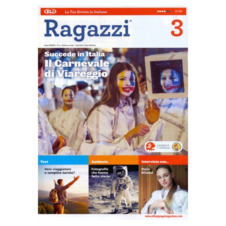 Czasopismo językowe Ragazzi - nr 3 - 2019/2020 + audio mp3(nagrania audio w formacie mp3 i materiały dla nauczyciela do ściągnięcia online). Poziom B1-B2 Europejskiego Systemu Opisu Kształcenia Językowego (Quadro Comune Europeo di Riferimento).