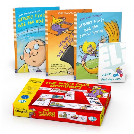 • trzy lektury po angielsku o przygodach Granny Fixit z serii Young ELI Readers wraz nagraniami audio mp3 (do wykorzystania również w formie audiobooka) i materiałami wideo;