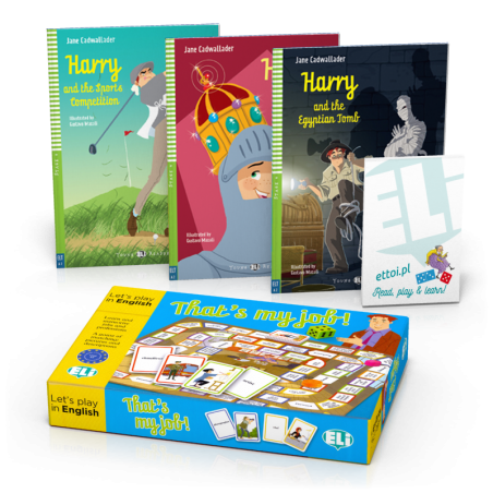 • trzy lektury o przygodach detektywa Harry'ego z serii Young ELI Readers wraz nagraniami audio mp3 (do wykorzystania również w formie audiobooka) i materiałami wideo;