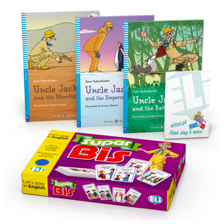 • trzy lektury o przygodach Uncle Jack z serii Young ELI Readers wraz nagraniami audio mp3 (do wykorzystania również w formie audiobooka) i materiałami wideo;