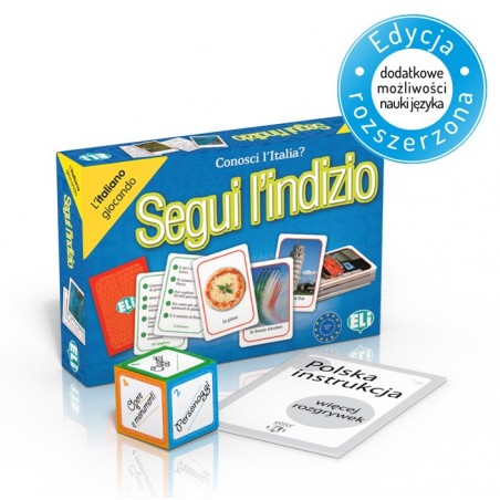Gra językowa Segui l'indizio - edukacyjna gra do nauki włoskiego - karciana zgadywanka z wiedzy o symbolach Włoch i kultury włoskiej - quiz kulturowy.