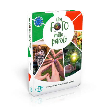 Una Foto mille parole - materiały stymulujące do mówienia: obrazkowe karty tematyczne do budowania wypowiedzi w języku włoskim ćwiczące umiejętność swobodnego wyrażania opinii i prowadzenia rozmowy na popularne tematy związane z otaczającym światem, środowiskiem, cywilizacją, kulturą i formami aktywności człowieka.