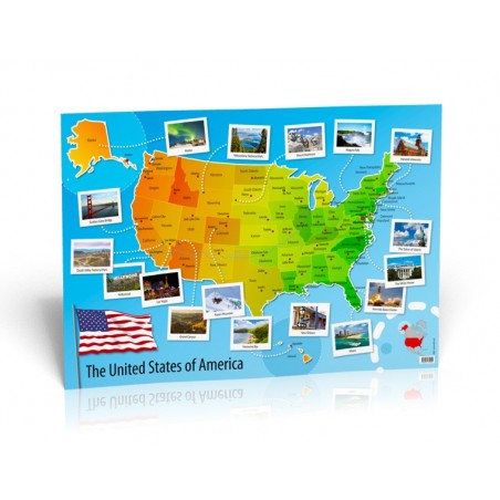 Plakat edukacyjny formatu 67,6x98cm przedstawiający mapę Stanów Zjednoczonych Ameryki.