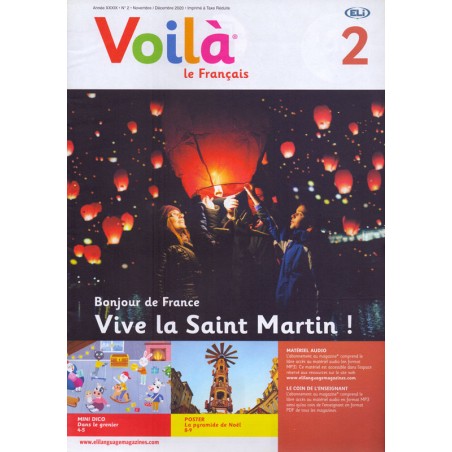Czasopismo językowe Voilà - nr 2 - 2020/2021 (nagrania audio w formacie mp3 i materiały dla nauczyciela do ściągnięcia online). Poziom A1 Europejskiego Systemu Opisu Kształcenia Językowego (Cadre Européen Commun de Référence).