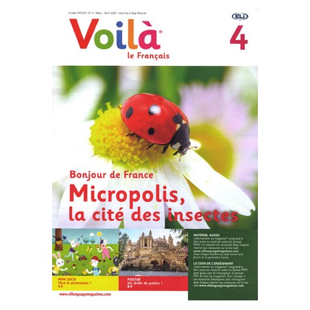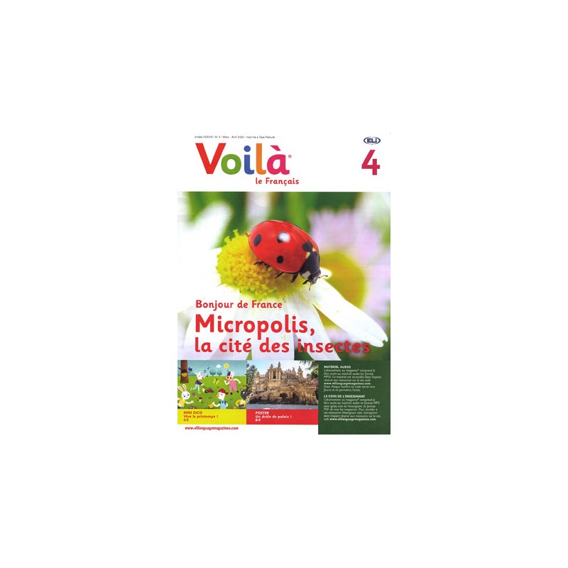 Czasopismo językowe Voilà - nr 4 - 2019/2020 (nagrania audio w formacie mp3 i materiały dla nauczyciela do ściągnięcia online). Poziom A1 Europejskiego Systemu Opisu Kształcenia Językowego (Cadre Européen Commun de Référence).